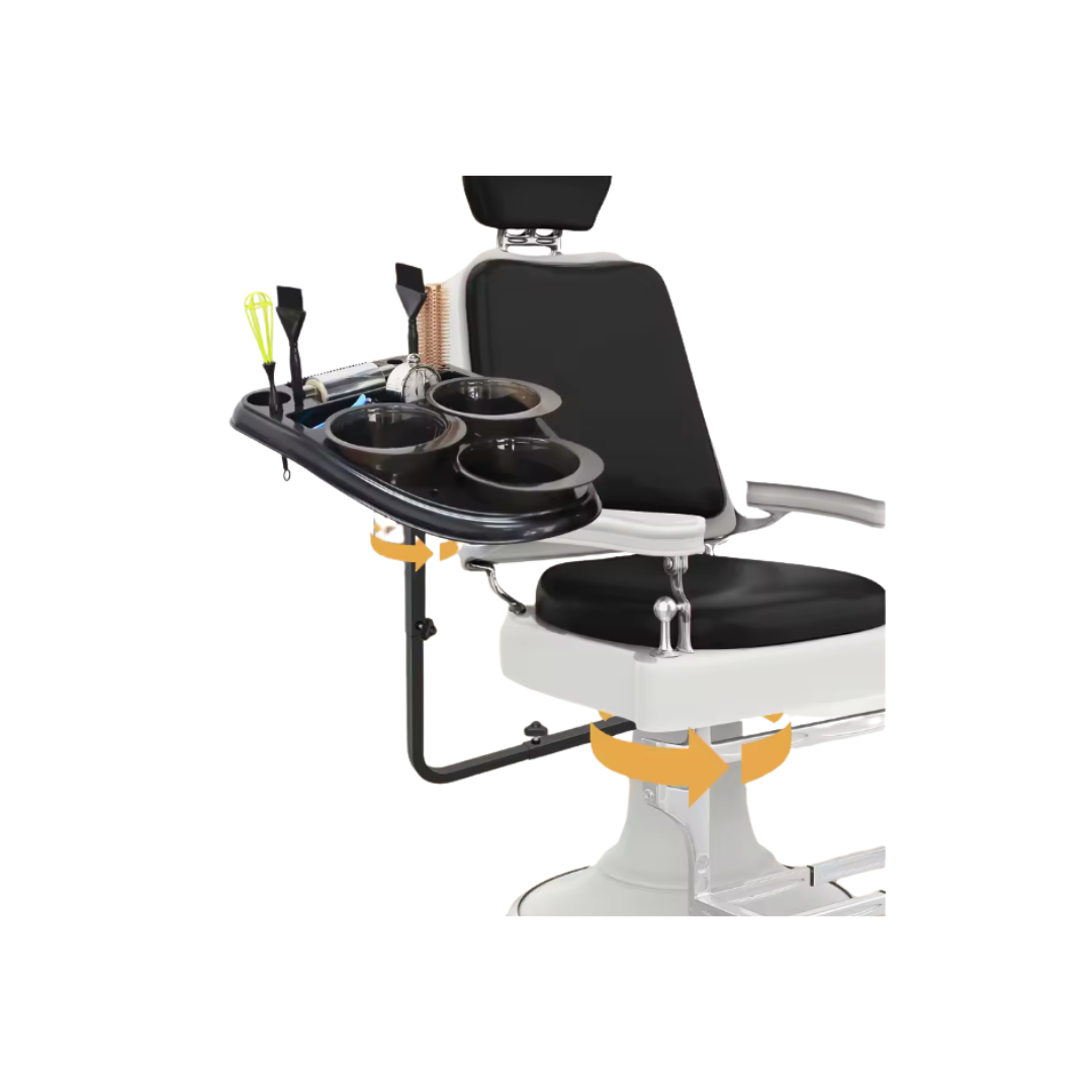 Praktična i funkcionalna rotirajuća polica  dizajnirana za montažu na frizersku stolicu, sa integrisanim aparatom za aluminijumsku foliju. Namenjen je profesionalcima koji žele da ubrzaju i pojednostave proces farbanja, a i drugih tretmana kose.